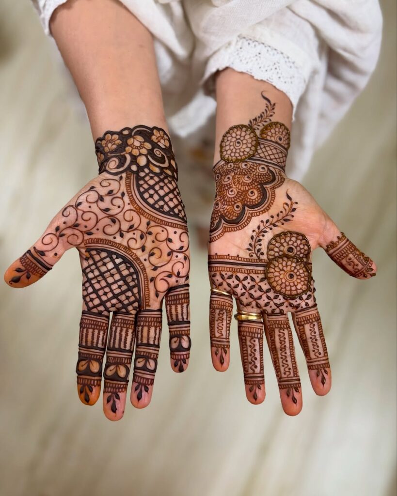 এই ছবিগুলোর মধ্যে আপনি পাবেন নান্দনিক আরবি মেহেন্দি, যা খোলা জায়গা এবং মিনিমালিস্ট নকশার জন্য বিখ্যাত, এবং ভারতীয় ঐতিহ্যবাহী ডিজাইন, যা জটিল প্যাটার্ন ও বিশদ বিবরণে সমৃদ্ধ। এছাড়াও রয়েছে আধুনিক ফিউশন ডিজাইন, যেখানে পশ্চিমা শৈলীর সাথে মেহেন্দির ঐতিহ্য মিশে নতুন রূপ পেয়েছে। এই সংকলনের প্রতিটি ছবি আপনাকে মুগ্ধ করবে এবং আপনার ব্যক্তিত্বের সাথে মানানসই একটি নিখুঁত মেহেন্দি ডিজাইন বেছে নিতে সাহায্য