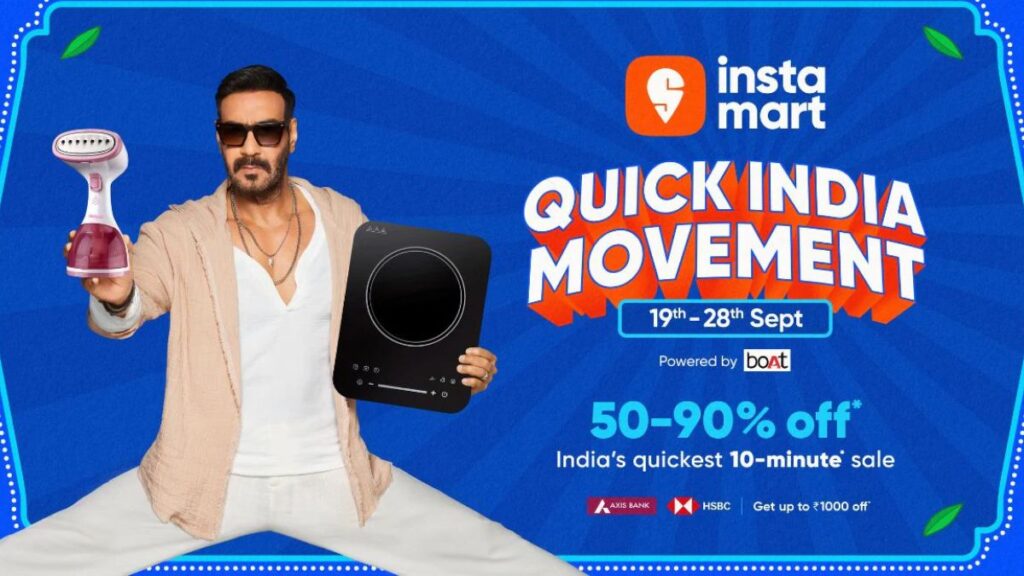 কলকাতা/মুম্বাই, ২০ সেপ্টেম্বর ২০২৫: স্বিগি ইনস্টামার্ট, ভারতের শীর্ষস্থানীয় কুইক কমার্স প্ল্যাটফর্ম, আজ তার ঐতিহাসিক ‘কুইক ইন্ডিয়া মুভমেন্ট’ ২০২৫ সেলের উদ্বোধন করেছে। এই মেগা সেলে ৫০,০০০-এর বেশি পণ্যে ৫০-৯০% পর্যন্ত ডিসকাউন্ট পাওয়া যাবে, এবং সবকিছু মাত্র ১০ মিনিটের মধ্যে ডেলিভারি হবে। ফেস্টিভ সিজনের এই সেল ১৯ সেপ্টেম্বর থেকে ২৮ সেপ্টেম্বর পর্যন্ত চলবে, যা স্বিগি এবং ইনস্টামার্ট অ্যাপে লাইভ রয়েছে। এই ক্যাম্পেইনের মাধ্যমে ইনস্টামার্ট ভারতের ক্রেতাদের দ্রুত ডেলিভারির সুবিধা এবং অভূতপূর্ব সেভিংসের স্বাদ দিতে প্রস্তুত হয়েছে।