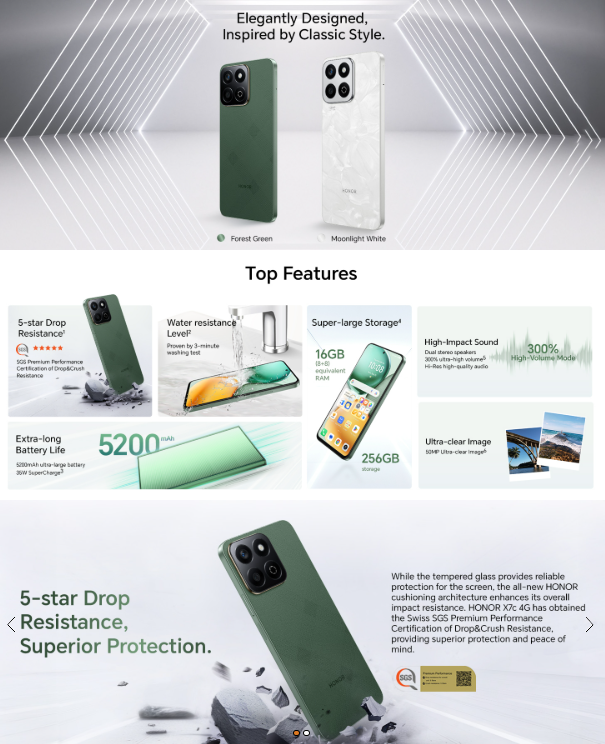 বাজেটে প্রিমিয়াম ফিচার চাইলে Honor X7c 5G হতে পারে আপনার সেরা পছন্দ। বিস্তারিত জানতে Amazon লিঙ্ক দেখুন।