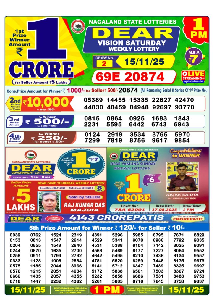 • যোগাযোগ: যেখান থেকে টিকিট কেনা হয়েছে, সেখানে যোগাযোগ করুন অথবা নাগাল্যান্ড স্টেট লটারি ডিপার্টমেন্টের নিকটস্থ অফিসে যান।